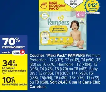 Actuellement en offre chez Carrefour : PAMPERS Couches Maxi Pack ✅ Valable du 29-12 au 12-01.