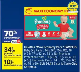 En plus de l'offre PAMPERS Culottes Maxi Economy Pack, Carrefour propose une large gamme de produits. Consultez le Catalogue Carrefour hebdomadaire pour découvrir les meilleures offres et promotions. En plus de PAMPERS Culottes Maxi Economy Pack, il y a aussi : Pampers - culottes maxi economy pack, Pampers culottes duo pack & PAMPERS Couches Maxi Pack.