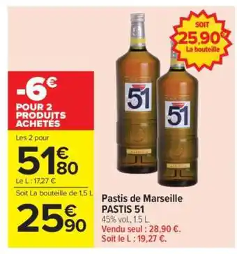 Pastis de Marseille PASTIS 51 : offres et promos Carrefour à découvrir