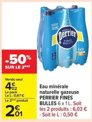 Offre PERRIER FINES BULLES 6 x 1 L chez Carrefour