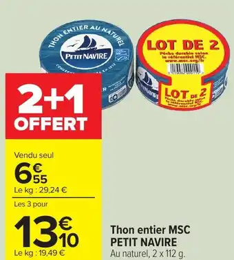 Actuellement en offre chez Carrefour : PETIT NAVIRE Thon entier MSC ✅ Valable du 28-04 au 11-05.