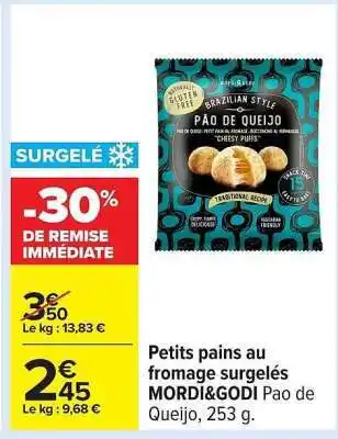 Offre Petits pains au fromage surgelés MORDI&GODI Pao de Queijo, 253 g chez Carrefour