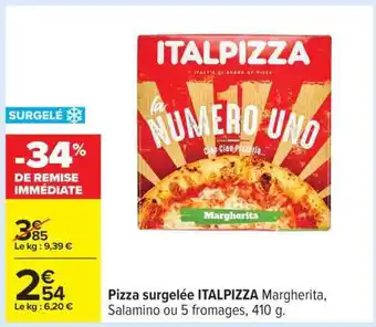 Actuellement en offre chez Carrefour : Pizza surgelée ITALPIZZA Margherita, Salamino ou 5 fromages, 410 g ✅ Valable du 6-01 au 19-01.