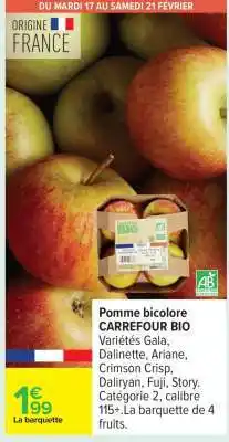 Actuellement en offre chez Carrefour : Pomme bicolore CARREFOUR BIO ✅ Valable du 17-02 au 2-03.