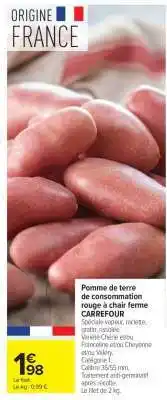 Y a-t-il une promotion sur Pomme de terre de consommation rouge à chair ferme la semaine prochaine chez Carrefour ?