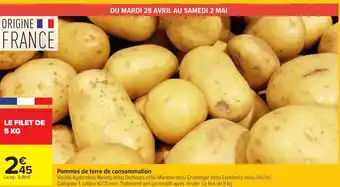 En plus de l'offre Pommes de terre de consommation, Carrefour propose une large gamme de produits. Consultez le Catalogue Carrefour hebdomadaire pour découvrir les meilleures offres et promotions. En plus de Pommes de terre de consommation, il y a aussi : Pommes De Terre De Consommation, Pommes de terre de consommation & Intermarché terroirs pommes de terre de consommation.