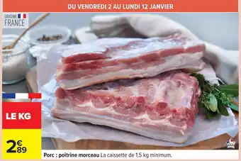 Actuellement en offre chez Carrefour : Porc: poitrine morceau ✅ Valable du 29-12 au 12-01.