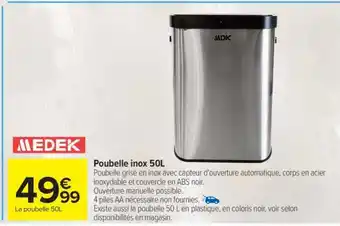 En plus de l'offre Poubelle inox 50L, Carrefour propose une large gamme de produits. Consultez le Catalogue Carrefour hebdomadaire pour découvrir les meilleures offres et promotions. En plus de Poubelle inox 50L, il y a aussi : MEDEK Poubelle inox, Medek poubelle inox 50l & Poubelle.