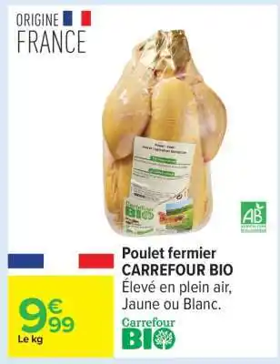 Actuellement en offre chez Carrefour : Poulet fermier CARREFOUR BIO ✅ Valable du 20-01 au 2-02.
