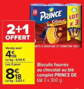 PRINCE DE LU Biscuits fourrés au chocolat au blé complet : offres et promos Carrefour à découvrir