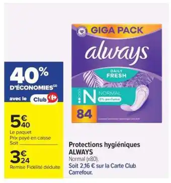 Actuellement en offre chez Carrefour : Protections hygiéniques Always ✅ Valable du 6-01 au 19-01.