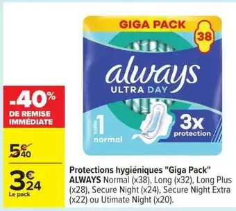 Protections hygiéniques Giga Pack ALWAYS : offres et promos Carrefour à découvrir