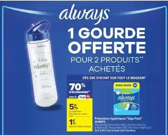 Protections hygiéniques Giga Pack ALWAYS offres et promotions en ligne chez Carrefour