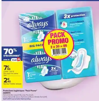 Offre Protections hygiéniques Pack Promo ALWAYS chez Carrefour