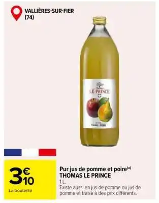 Pur jus de pomme et poire THOMAS LE PRINCE offres et promotions en ligne chez Carrefour