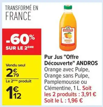 Pur jus Offre découverte ANDROS : offres et promos Carrefour à découvrir