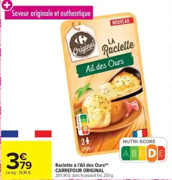 Actuellement en offre chez Carrefour : Raclette à l'ail des ours carrefour original ✅ Valable du 21-01 au 28-02.