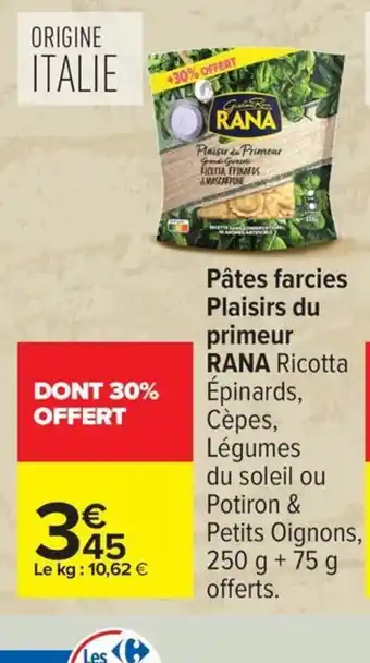 Offre RANA Pâtes farcies Plaisirs du primeur chez Carrefour