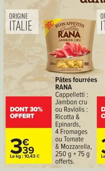 Y a-t-il une promotion sur RANA Pâtes fourrées la semaine prochaine chez Carrefour ?