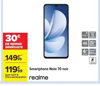Actuellement en offre chez Carrefour : REALME Smartphone Note 70 noir ✅ Valable du 29-12 au 12-01.