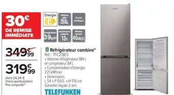 Actuellement en offre chez Carrefour : Réfrigérateur combiné TELEFUNKEN ✅ Valable du 24-02 au 16-03.