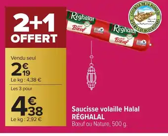 Actuellement en offre chez Carrefour : RÉGHALAL Saucisse volaille Halal ✅ Valable du 3-02 au 16-02.