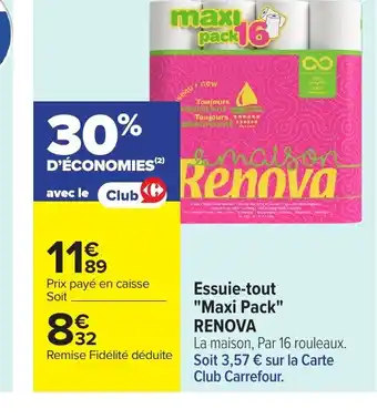 Actuellement en offre chez Carrefour : RENOVA Essuie-tout Maxi Pack ✅ Valable du 21-04 au 4-05.