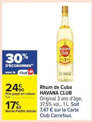 Actuellement en offre chez Carrefour : Rhum de Cuba HAVANA CLUB ✅ Valable du 24-02 au 9-03.