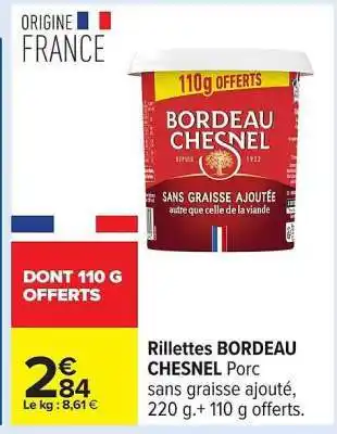 Actuellement en offre chez Carrefour : RILLETTES “BORDEAU CHESNEL” ✅ Valable du 10-02 au 23-02.