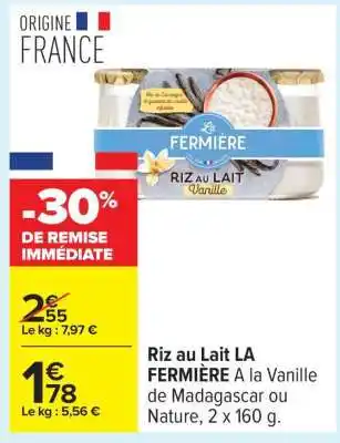 Actuellement en offre chez Carrefour : Riz Au Lait La Fermière ✅ Valable du 13-01 au 26-01.