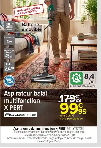 Offre ROWENTA Aspirateur balai multifonction chez Carrefour
