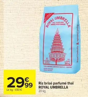 Actuellement en offre chez Carrefour : ROYAL UMBRELLA Riz brisé parfumé thaï ✅ Valable du 20-01 au 2-02.