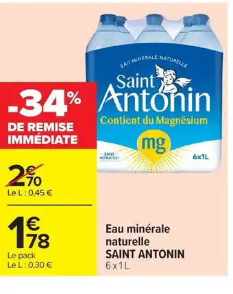 Actuellement en offre chez Carrefour : SAINT ANTONIN Eau minérale naturelle ✅ Valable du 21-04 au 4-05.