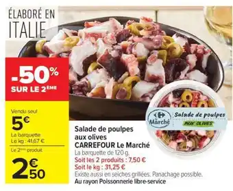 Actuellement en offre chez Carrefour : Salade de poulpes aux olives ✅ Valable du 7-04 au 20-04.