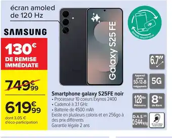 Actuellement en offre chez Carrefour : SAMSUNG Smartphone galaxy S25FE noir ✅ Valable du 21-04 au 4-05.