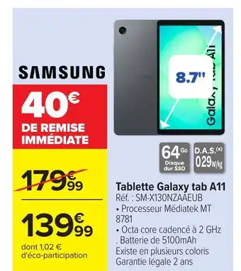 Offre SAMSUNG Tablette Galaxy tab A11 chez Carrefour
