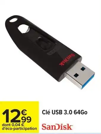SANDISK Clé USB 3.0 64Go : offres et promos Carrefour à découvrir