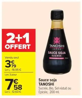 Sauce soja TANOSHI offres et promotions en ligne chez Carrefour