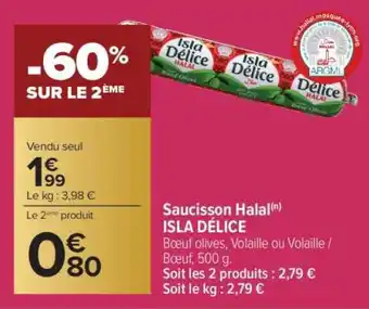 Offre Saucisson Halal ISLA DÉLICE chez Carrefour