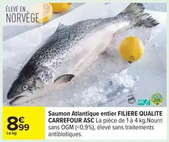 Actuellement en offre chez Carrefour : Saumon Atlantique entier FILIERE QUALITE CARREFOUR ASC ✅ Valable du 17-03 au 30-03.