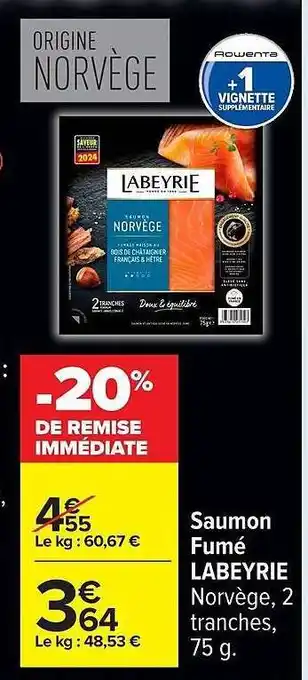 Offre SAUMON FUMÉ LABEYRIE chez Carrefour