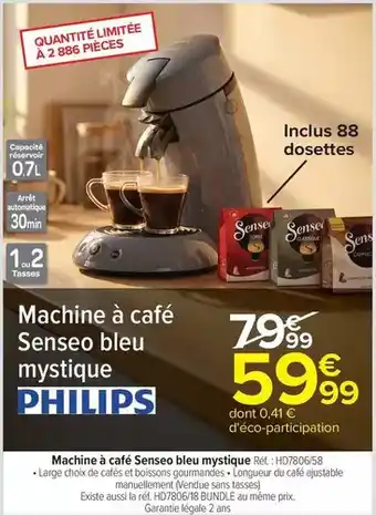 Le prix de l'offre Senseo - machine à café se trouve également en haut de la page, ainsi que la date à laquelle l'offre est disponible. Vous pouvez également vérifier les prix dans le Catalogue Carrefour actuel ou sur le site Internet de Carrefour. Les offres vous permettent d'acheter les produits Carrefour au prix le plus bas.