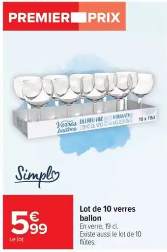 Offre Simpl Lot de 10 verres ballon chez Carrefour