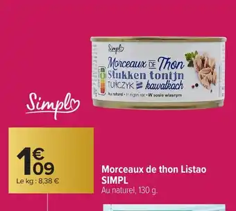 Actuellement en offre chez Carrefour : SIMPL Morceaux de thon Listao ✅ Valable du 3-02 au 16-02.