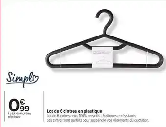 Offre Simply - lot de 6 cintres en plastique chez Carrefour