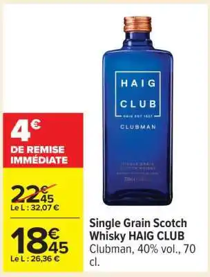 Actuellement en offre chez Carrefour : SINGLE GRAIN SCOTCH WHISKY HAIG CLUB ✅ Valable du 27-01 au 9-02.