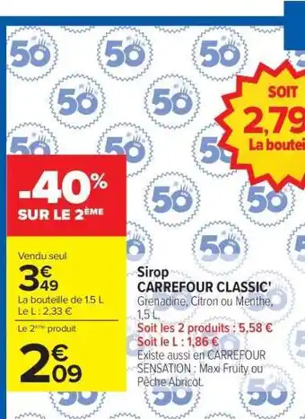 Offre Sirop CARREFOUR CLASSIC chez Carrefour