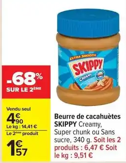Actuellement en offre chez Carrefour : Skippy - beurre de cacahuètes ✅ Valable du 20-01 au 2-02.