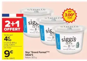 Actuellement en offre chez Carrefour : Skyr Grand Format(m) SIGGI'S ✅ Valable du 22-01 au 9-02.