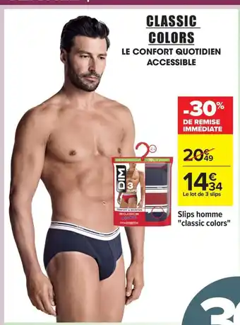 Actuellement en offre chez Carrefour : Slips homme classic colors ✅ Valable du 27-01 au 9-02.